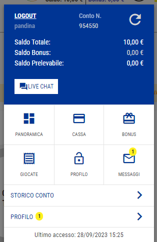 RICORDA, inoltre, che quando una transazione di ricarica non va a buon fine ed i soldi non vengono trasferiti sul conto gioco, i fondi potrebbero essere bloccati dalla tua banca prima di essere nuovamente disponibili. Queste uscite potrebbero essere indicate come Uscite da contabilizzare.