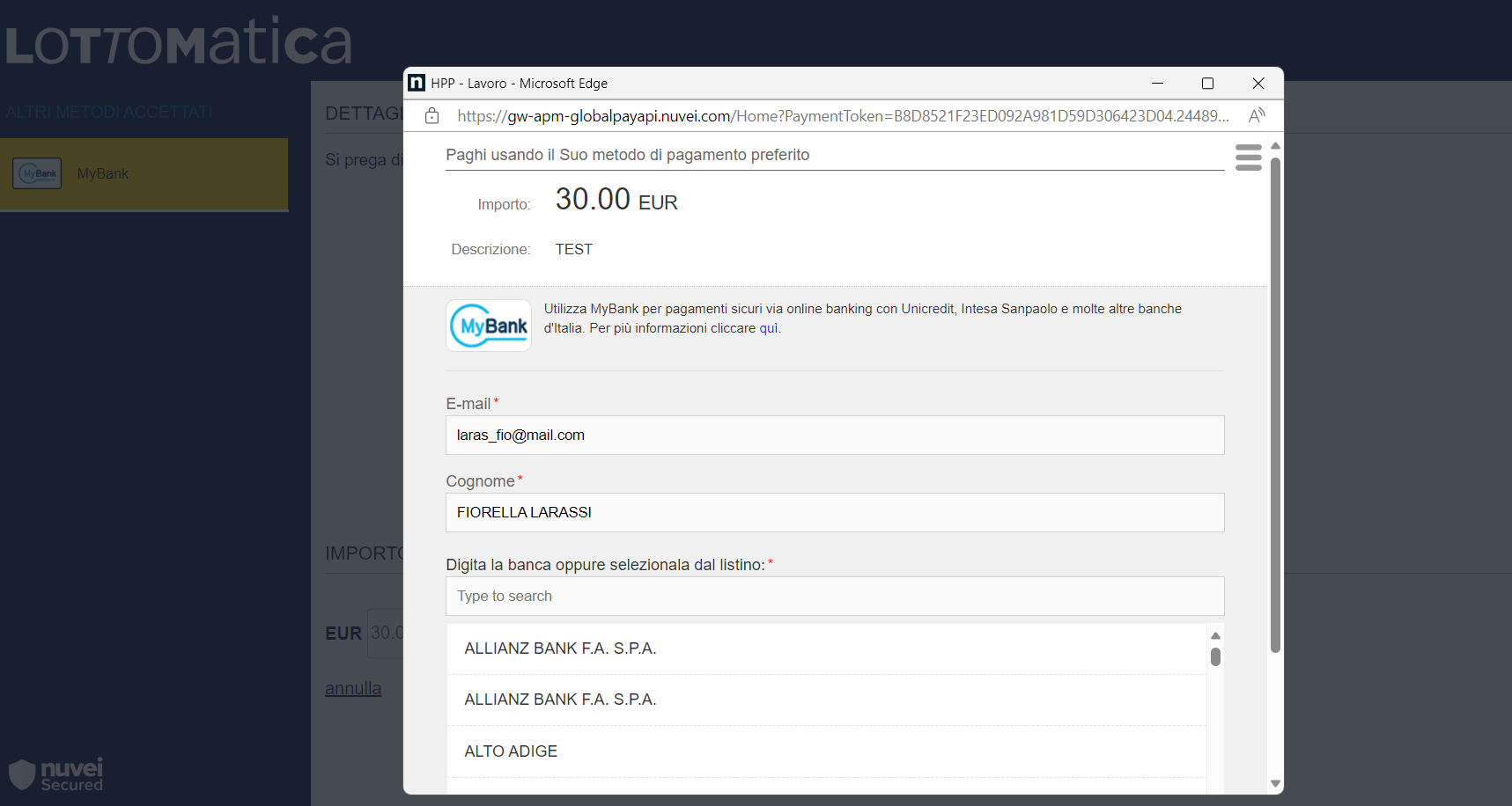 potrai visualizzare il metodo di pagamento MyBank tra quelli disponibili nella sezione Ricarica.