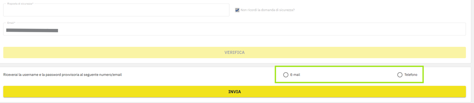 Selezionando la sezione interessata e compilando i campi richiesti, puoi procedere al recupero delle credenziali.