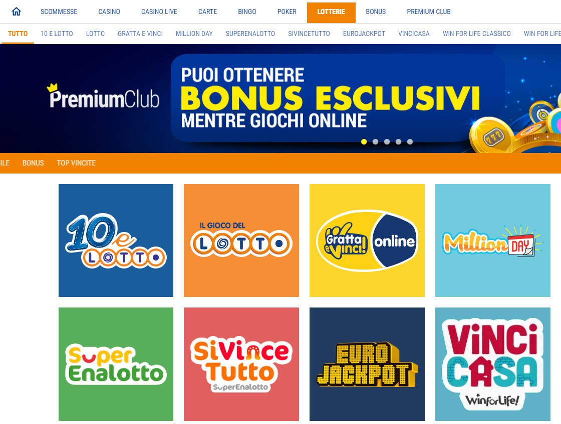 - Bonus Lotterie: valido su tutti i giochi Lotterie