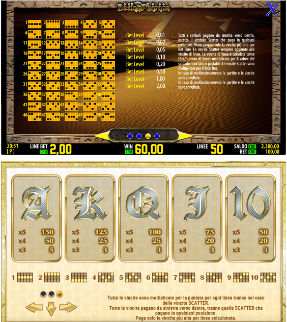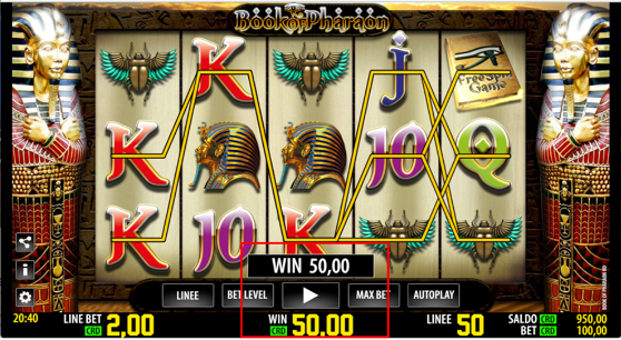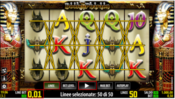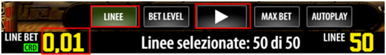 Nel caso sopra riportato se per ogni linea la puntata è di 0,01 € e le linee selezionate sono 50 il totale di puntata per ogni spin è di 0,50 €.