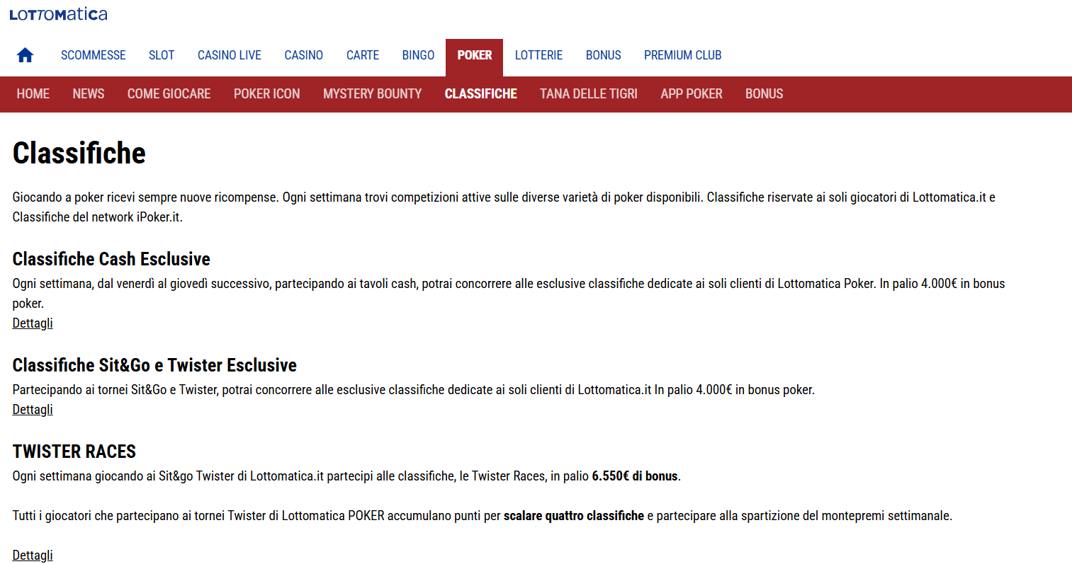 In caso di classifica è necessario sempre verificare la graduatoria stessa e determinare se si è in una posizione a premio consultando gli archivi dal sito: