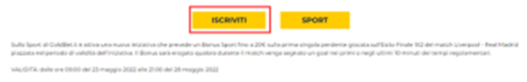- I bonus relativi allo sport in relazione ad avvenimenti specifici, al fine dell’adesione, richiedono di cliccare sul tasto “ISCRIVITI”