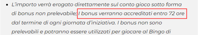 In caso di vincita inferiore ai 500,00 € verrà erogato un bonus a garantire l’importo minimo, bonus che verrà accreditato entro 72 ore dal termine dell’iniziativa