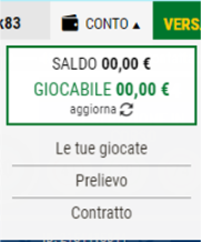 - Contratto (Apre la sezione del sito relativa ai dati di validazione del conto gioco)