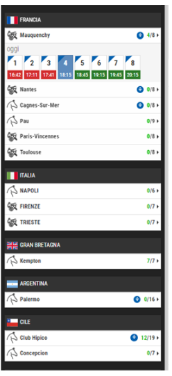 - Seleziona il paese e la località dell’ippodromo sulla sinistra