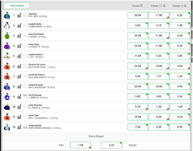 - Dettagli corsa come il nome, l’orario di inizio, il montepremi