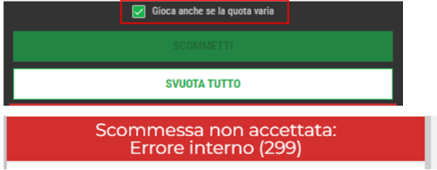 - Consigliamo di mettere il flag su “Gioca anche se la quota varia” altrimenti una delle scommesse potrebbe non andare a buon fine riportando un messaggio di errore.