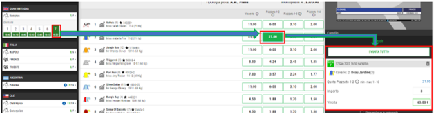 Per effettuare una sola transazione per più avvenimenti, ovvero una MULTIPLA vera e propria sarà necessario effettuare puntate SU CORSE DIFFERENTI, quindi: