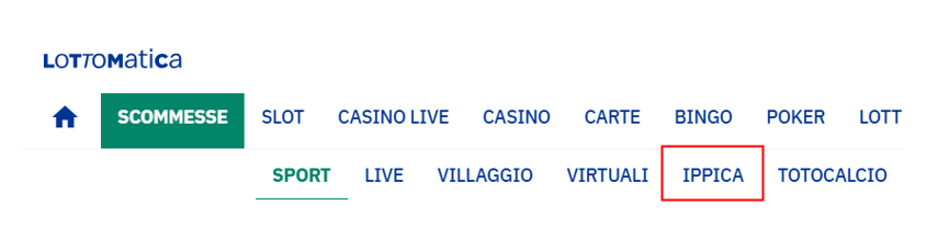 - Vai sul sito nella sezione Scommesse➡Ippica