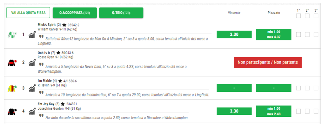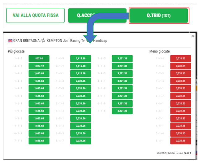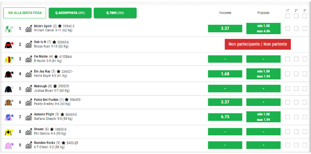 - Il calcolo in base alla raccolta continua fino al momento in cui le quote si chiudono e non è più possibile puntare perché la corsa inizia.