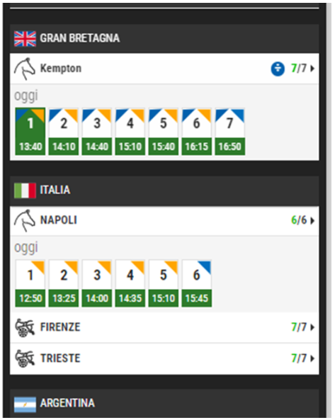 - Seleziona il paese e la località dell’ippodromo sulla sinistra