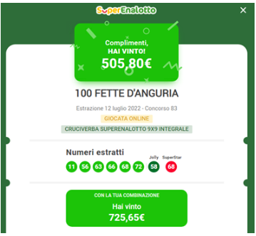 Nota: Come previsto dal regolamento di gioco, il pagamento per le vincite superiori a 5.200€ sarà autorizzato solo dopo una verifica da parte di un'apposita Commissione istituita dall'Agenzia dei Monopoli.