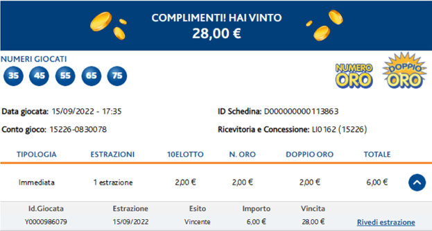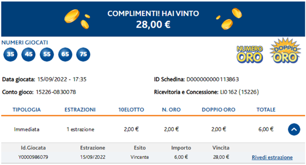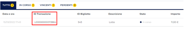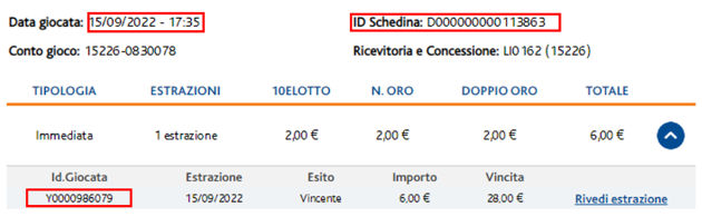 Occorrerà inoltre comunicare ITD giocata, ovvero il codice univoco che identifica la combinazione giocata vincente, riportato nel Dettaglio Giocata.