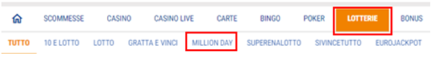 - Recarsi alla Sezione Lotterie➡MillionDay