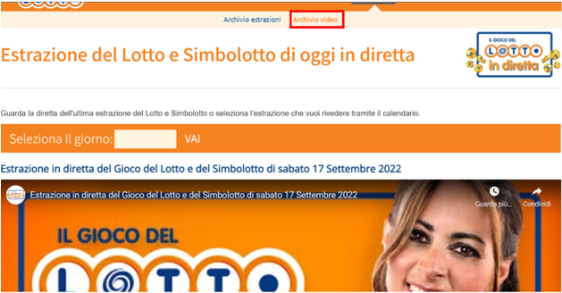 Il lotto presenta anche la possibilità di rivedere la registrazione dell’estrazione in “Archivio Video”