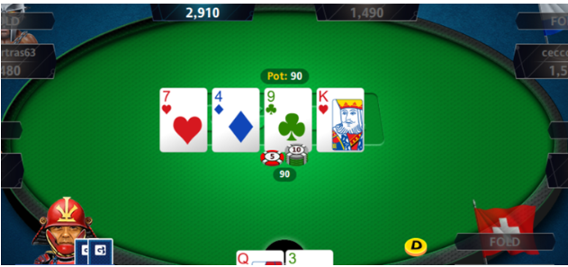 - Il sistema mostra anche fino a quel punto che tipo di combinazione di mano si ha in possesso (in questo caso era “Carta Alta – Re”