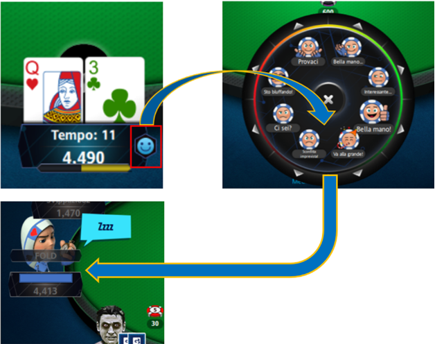 N.B.: L’utilizzo di alcune emoji può essere frainteso come offensivo e di disturbo da parte dei giocatori al tavolo, consigliamo quindi un utilizzo positivo, parsimonioso e poco aggressivo e ripetuto.