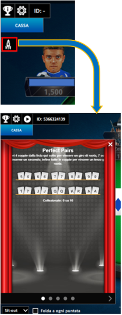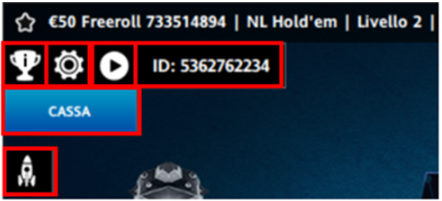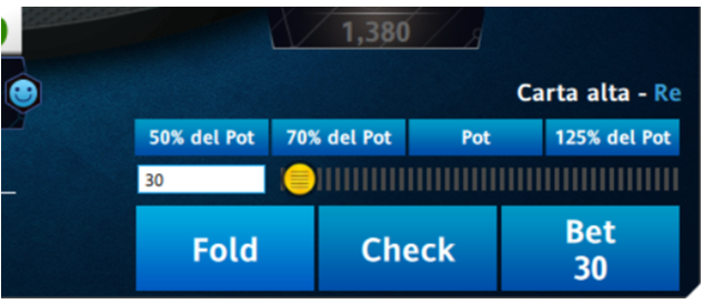 - Opzioni rapide di puntata (es: fold, check, bet, call e così via a seconda della dinamica)