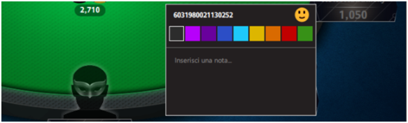 Cliccando sull’icona di un giocatore avversario, è possibile prendere Note sul suo stile di gioco: