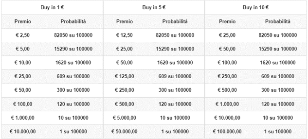 Nel caso in cui il valore del premio estratto sia uguale o superiore a € 1.000,00, il premio verrà distribuito come segue: il primo classificato vince il 70% del montepremi, il secondo il 15 % , il terzo ed il quarto classificato ricevono il 7,5 % ciascuno.