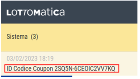 - Numero coupon (RICORDARE CHE NELLO STORICO GIOCATE RIMANE PER 90 GIORNI)